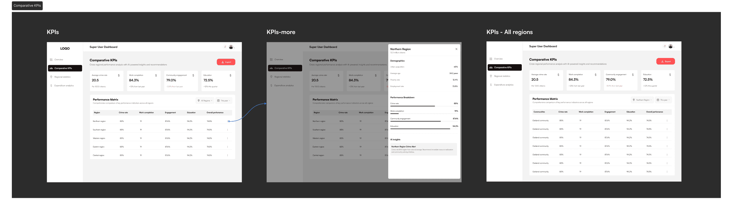 Comparative KPIs: Cross-regional performance analysis supported by AI-powered insights.