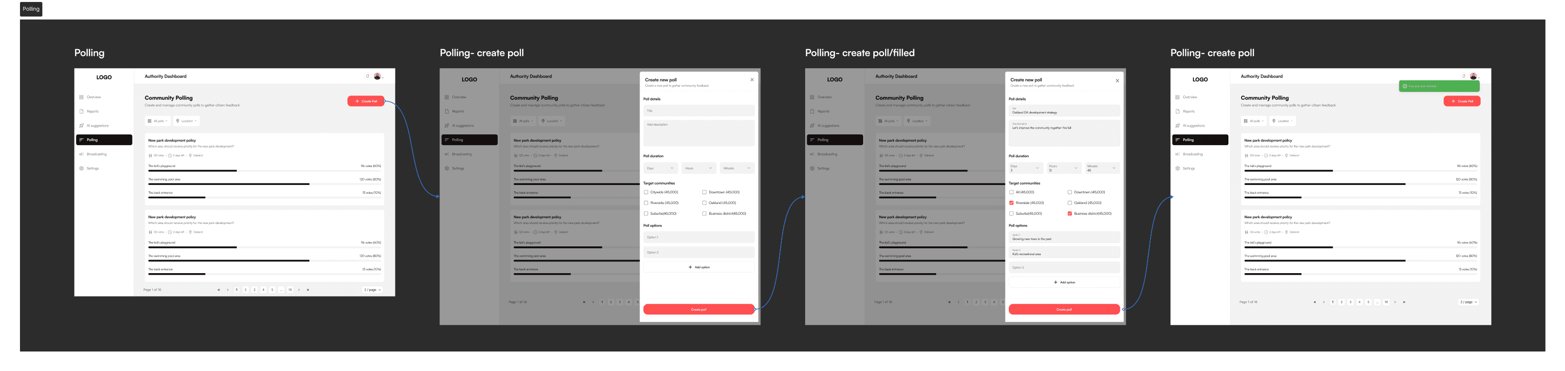 Poll Creation: Authorities can create polls targeted to specific communities or the public in general.